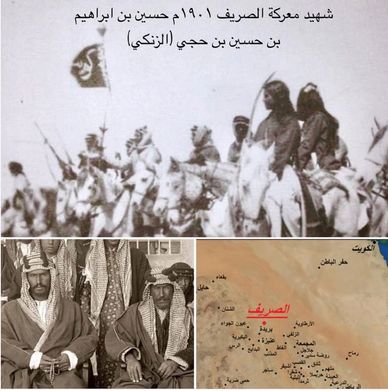 من شهداء الاسرة شهيد معركة الصريف 1901م الشهيد حسين بن ابراهيم بن حسين بن حجي (الزنكي) (1901/1880م) ، والداته المرحومة منيرة العبيدي خالته شاعرة الكويت المعروفة موضي العبيدي فقد شاءت الاقدار ان يستشهد حسين بن ابراهيم بن حسين بن حجي في معركة الصريف بجانب ابن عمته آمنة الشهيد جاسم بن محمد بورسلي وابن خالته الشهيد محمد بن عويش ابن الشاعرة موضي العبيدي رحمهم الله جميعا . معركة الصريف حصلت في عهد الشيخ مبارك الصباح عام 1901م ضد الامير عبدالعزيز بن رشيد فتعاهد الشيخ مبارك الصباح والإمام عبدالرحمن بن فيصل آل سعود على ان يكونا يدا واحده على بن رشيد ، ولكن انهزم فيها جيش الشيخ مبارك وحلفاءه وكان عدد المشاركين معه من اهل الكويت حوالي ١٢٠٠ مقاتل (كما قدرته بعض المصادر حيث تختلف الأرقام) لم يرجع منهم الى ١٥٠ مقاتل رحمهم الله جميعا ، اما اجمالي القتلى من جيش الشيخ مبارك الصباح وحلفاءه فيتراوح ما بين ٢٠٠٠ الى ٣٠٠٠ ، وسقط الاحبه شهداء بإذن الله بتلك المعركة ولم يتم التعرف على جثة حسين بن ابراهيم بن حسين بن حجي (الزنكي) رحمه الله الا من خلال الشامه التي على ظهره ولم يكتب له ذرية فقد كانت زوجته فاطمة بنت عبدالرحيم بن حسين بن حجي (الزنكي) حاملا فلما علمت باستشهاد زوجها حزنت عليه حزنا شديدا وسقط جنينها البكر قبل موعد وﻻدته ، وقد رثت خالته الشاعره موضي العبيدي(خنساء الكويت) ابنها محمد العويش و أحبته في قصيده شعريه مطلعها: